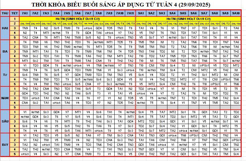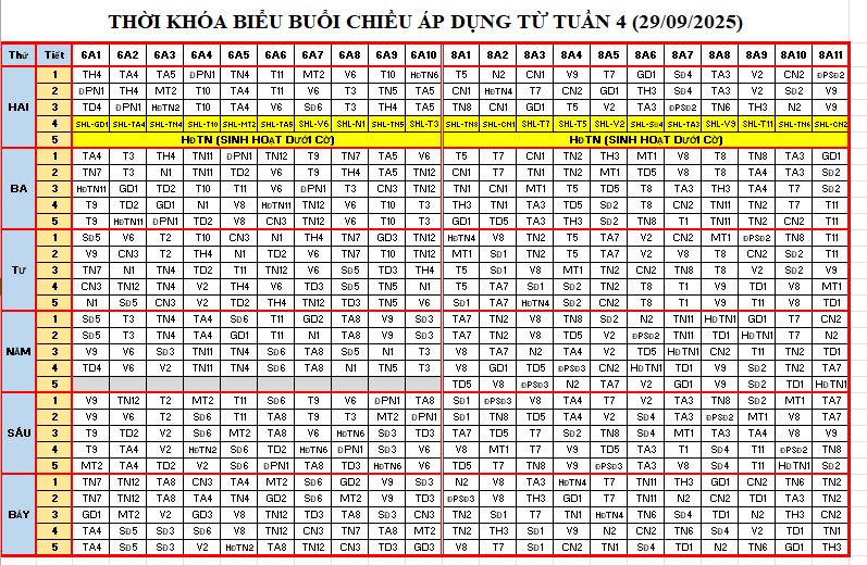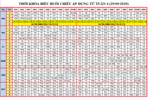 THỜI KHÓA BIỂU ÁP DỤNG TỪ TUẦN 4